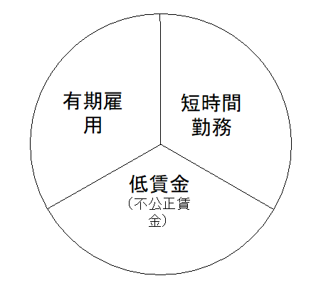 図 非正規雇用における短時間勤務・有期雇用・低賃金の三位一体