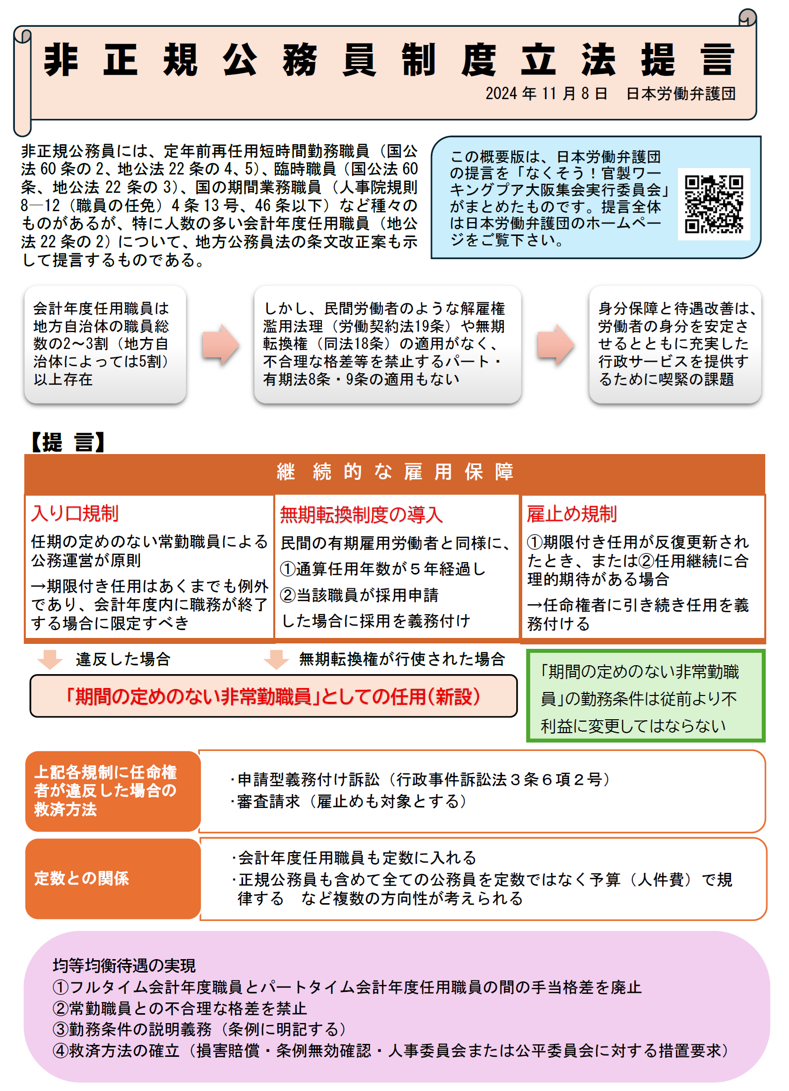 その際に学ぶべきは、2024年11月に日本労働弁護団から出された「非正規公務員制度立法提言」です。