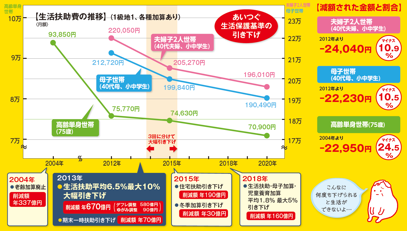 あいつぐ生活保護基準の引き下げ