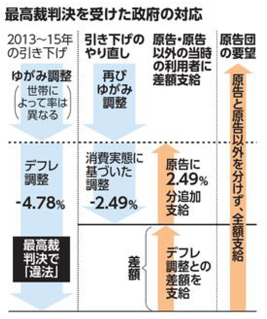 この点は、さきほど私が述べた話とちょっとずれているところがあります。物価の偽装が問題だと私は述べました。最高裁はそこに踏み込んでいない。物価だけで基準の引き下げを行ったのが問題だと最高裁判決は述べている。そこのずれがあるんです。