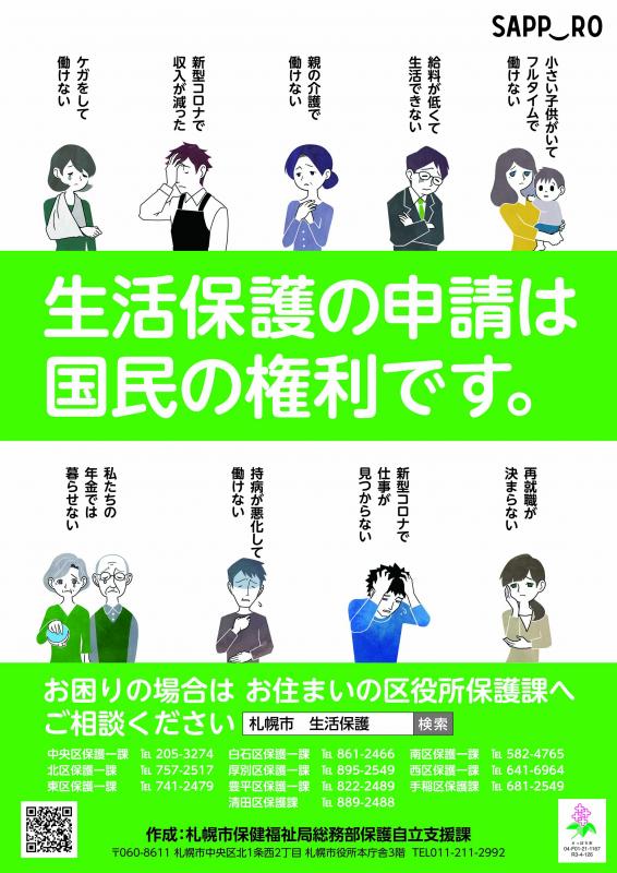 ちなみに、札幌市では「生活保護の申請は国民の権利です」というポスターが作られました。たくさんの枚数が貼られたわけでは決してないのですが、ただ、全国的には、札幌市のポスターを参考にして同様のポスターが作成されるという喜ばしいことがありました。