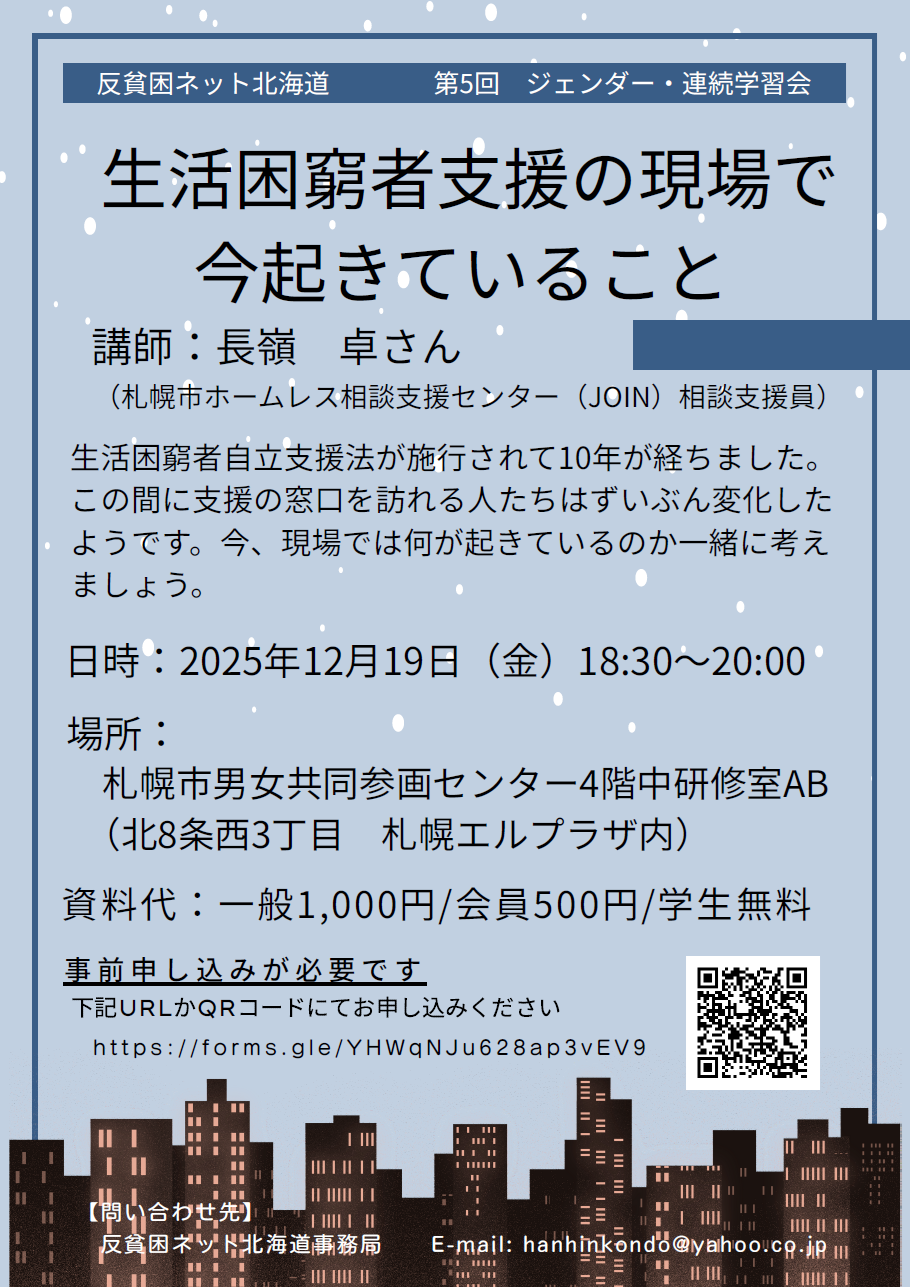 12月19日(金)「生活困窮者支援の現場で今起きていること」/反貧困ネット北海道